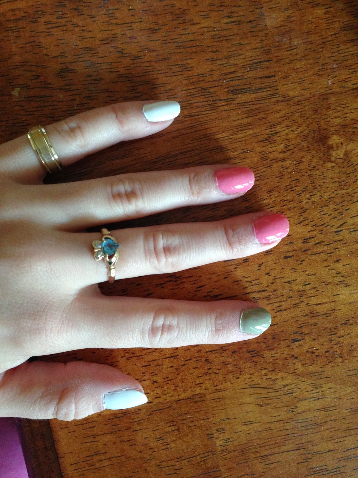 Of course this is the easy part. You don't have to paint your nails the same color or the same order. I just really liked the white and pink and the green was an interesting twist.